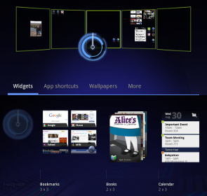 วิดเจ็ตหน้าจอหลักเป็นที่นิยมในหมู่ผู้ใช้เนื่องจากช่วยให้เข้าถึงข้อมูลเฉพาะของแอปพลิเคชันได้อย่างรวดเร็วจากหน้าจอหลักโดยตรง Android 3.0 ช่วยให้นักพัฒนาแอปยกระดับวิดเจ็ตหน้าจอหลักไปอีกขั้นด้วยเนื้อหาประเภทต่างๆ เพิ่มเติมและโหมดการโต้ตอบกับผู้ใช้แบบใหม่ ตอนนี้นักพัฒนาแอปสามารถใช้วิดเจ็ต UI มาตรฐานประเภทต่างๆ เพิ่มเติมในวิดเจ็ตหน้าจอหลัก รวมถึงวิดเจ็ตที่ช่วยให้ผู้ใช้พลิกดูคอลเล็กชันเนื้อหาเป็นกอง ตารางกริด หรือรายการ 3 มิติ ผู้ใช้โต้ตอบกับวิดเจ็ตในหน้าจอหลักด้วยวิธีใหม่ๆ ได้ เช่น การใช้ท่าทางสัมผัสเพื่อเลื่อนและพลิกเนื้อหาที่แสดงในวิดเจ็ต
