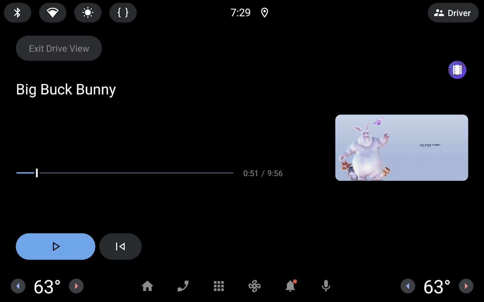 Ejecuta la app en el emulador que acabas de crear usando la configuración de ejecución app. Para probar el comportamiento de la app, navega a la pantalla del reproductor y simula la conducción.