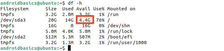 df명령어를 사용하여 사용 가능한 디스크 공간을 확인합니다.