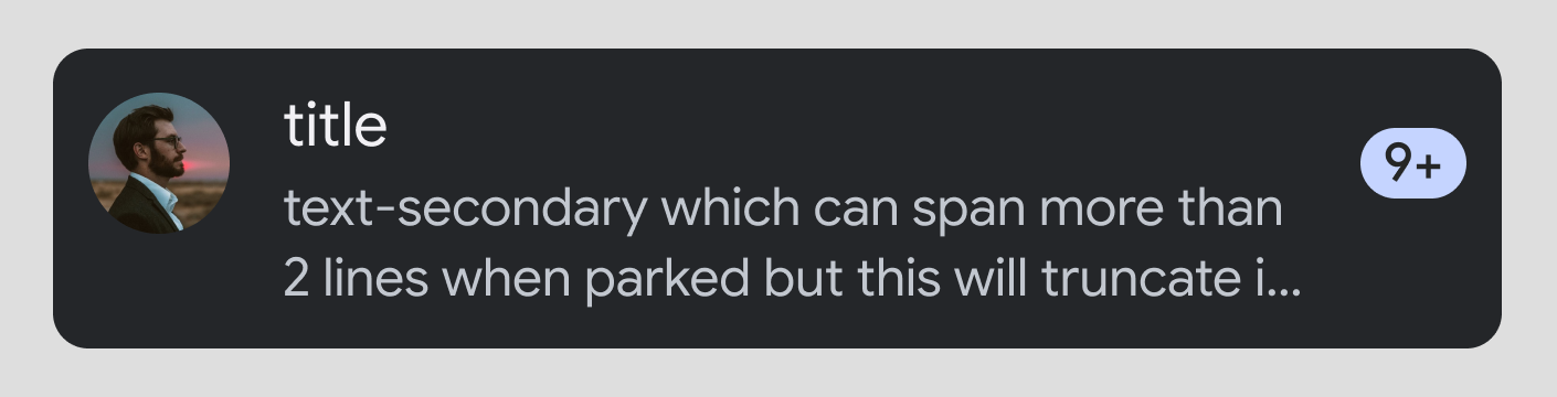 Texto secundario más largo: Si el texto secundario tiene más de 2 líneas, se truncará mientras conduces. El texto completo solo se verá cuando el vehículo esté estacionado.