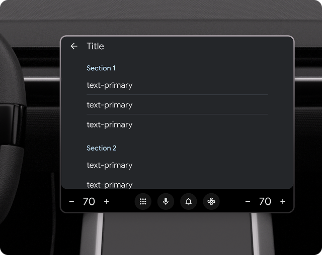 مقدار متن ثانویه مجاز در هر ردیف فهرست بسته به پارک یا رانندگی خودرو متفاوت است. برای به حداقل رساندن حواس پرتی، متن در حین رانندگی به 2 خط کوتاه می شود. هر متنی که قرار است در حین رانندگی خوانده شود باید در ابتدای متن ثانویه نمایش داده شود.