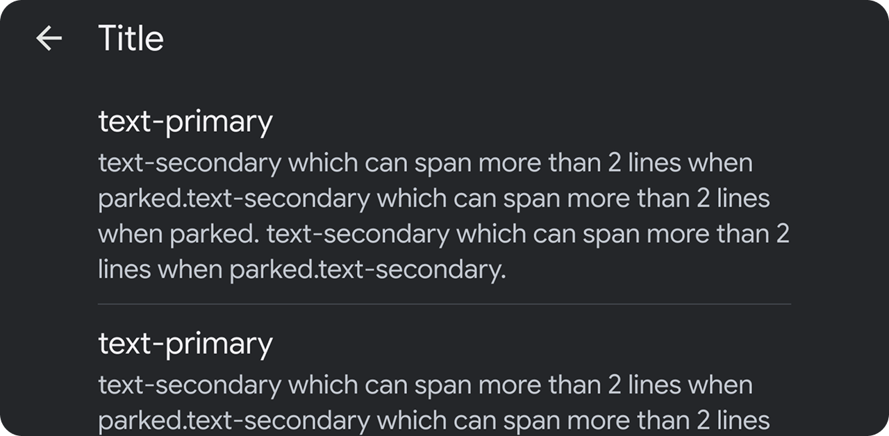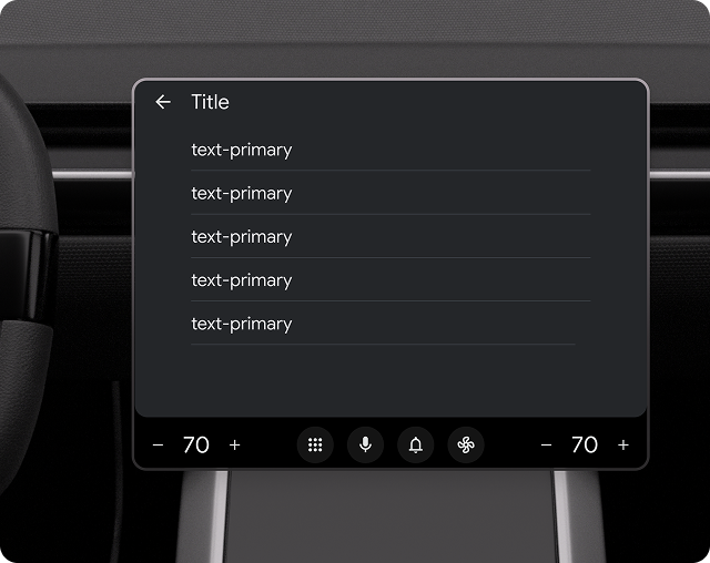 Lượng văn bản phụ được phép trong mỗi hàng của danh sách sẽ thay đổi tuỳ thuộc vào việc xe đang đỗ hay đang lái. Để giảm thiểu sự phân tâm, văn bản sẽ bị cắt bớt thành 2 dòng trong lúc lái xe. Mọi văn bản mà người dùng dự định đọc khi lái xe đều phải xuất hiện ở đầu văn bản phụ.