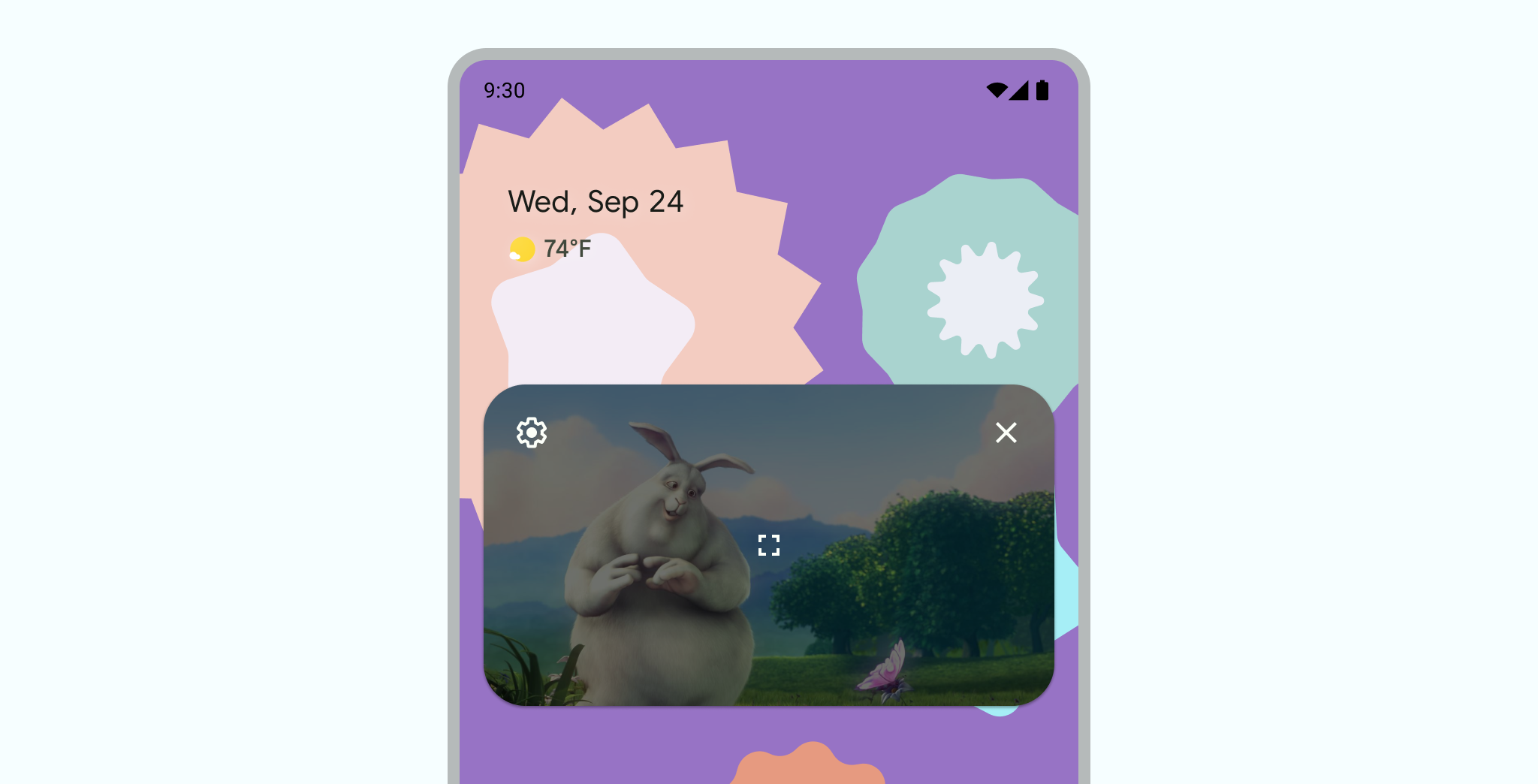 به کاربران اجازه دهید به تماشای ویدیوی خود نه تنها در برنامه شما، بلکه در سراسر دستگاه خود ادامه دهند. برنامه شما زمانی را کنترل میکند که فعالیت فعلی وارد حالت PiP شود – این میتواند تعاملی مانند خروج از نمای فعلی یا کشیدن انگشت به بالا برای رفتن به خانه باشد.