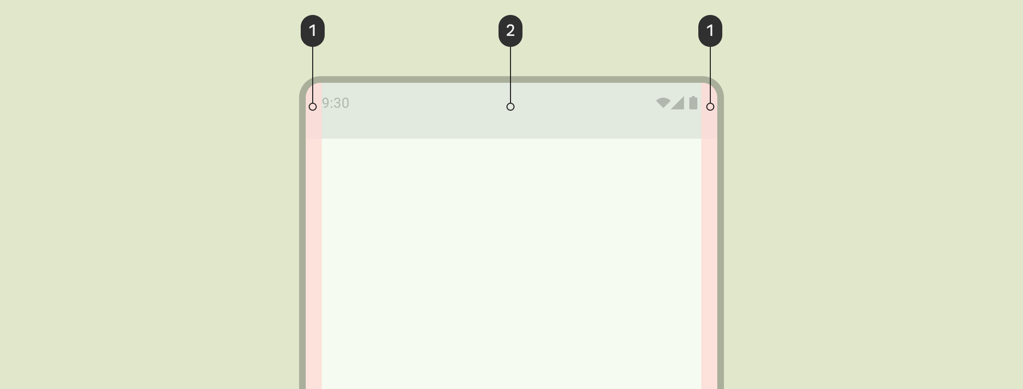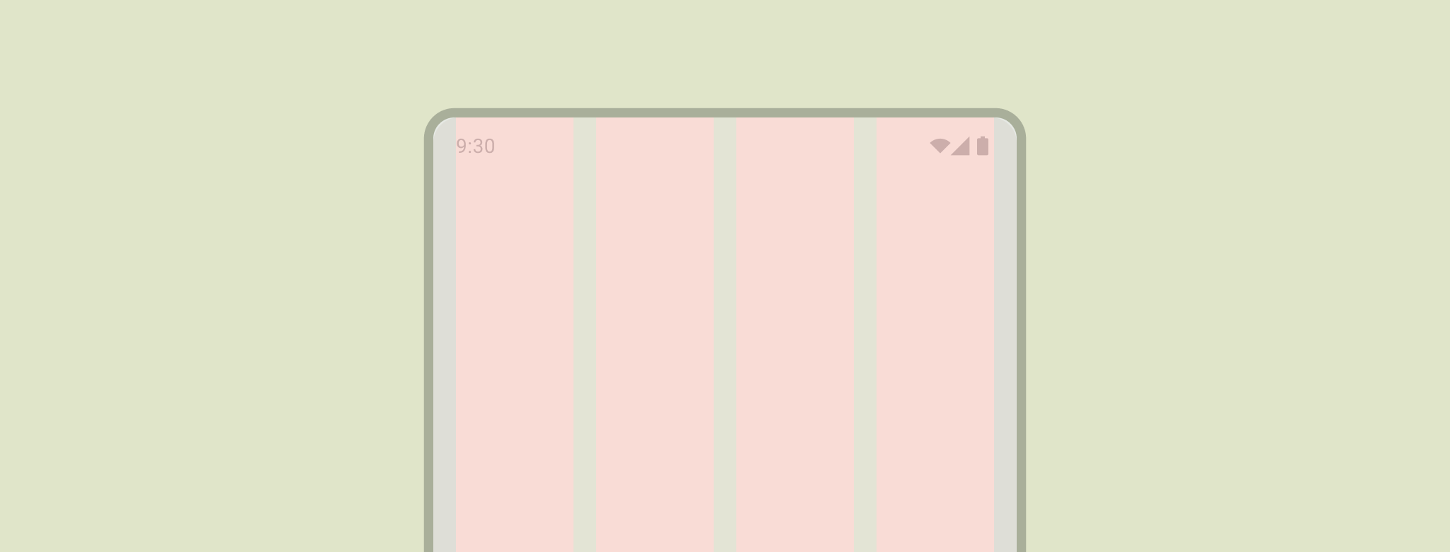 Marginesy zapewniają odstępy po lewej i prawej stronie ekranu oraz treści. Standardowa wartość marginesu w przypadku kompaktowego rozmiaru to 16 dp, ale marginesy powinny być dostosowane do większych ekranów. Treść główna i działania w aplikacji muszą mieścić się w tych marginesach i być z nimi zgodne.