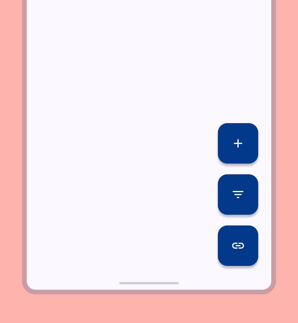 فعل و انفعالات ضروری، مانند ناوبری اولیه، را در یک منطقه صفحه قابل دسترسی نگه دارید. دکمه های عمل شناور (FABs) یک نقطه تعامل برجسته و قابل دسترس را ارائه می دهند