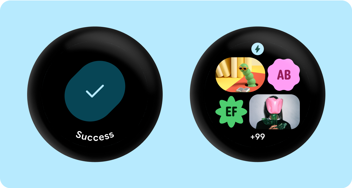 ما همچنین با استفاده از شکلهای ظرف انعطافپذیر برای گرد کردن و تیز کردن شعاع گوشه برای پشتیبانی از لیستهای شکلگیری شکل و حالتهای دکمه، به زبان شکل به روشی بسیار گستردهتر و معنادارتر متمایل میشویم. ما دکمههای لبهدار را بهعنوان یک الگوی طراحی نمادین و قابل مالکیت جدید برای دستگاههای گرد در Wear معرفی میکنیم.