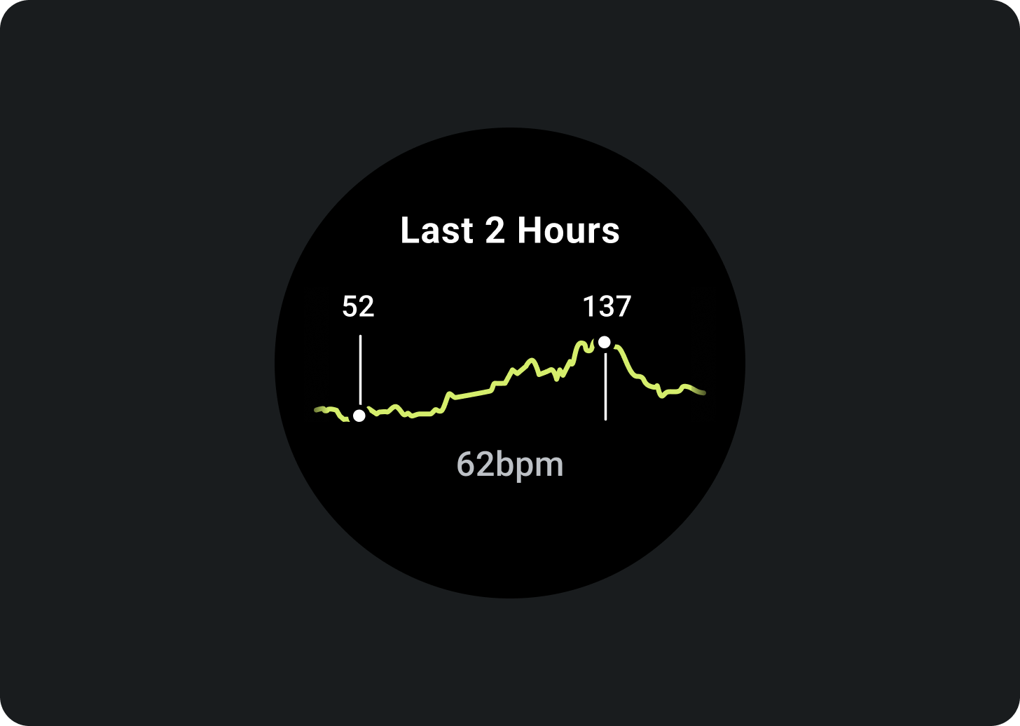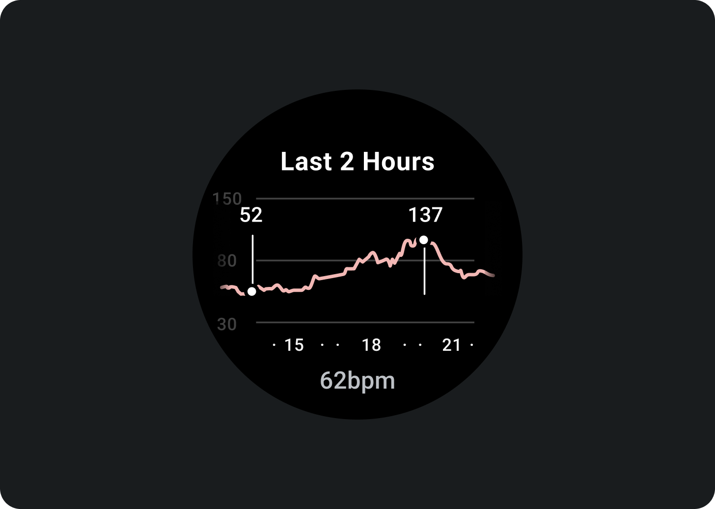 בוחרים קצב עדכון מתאים לאריחים, תוך התחשבות בהשפעה על חיי הסוללה של המכשיר. אם אתם משתמשים במקורות נתונים של פלטפורמה, כמו דופק ומספר צעדים, מערכת Wear OS קובעת את קצב העדכון בשבילכם.