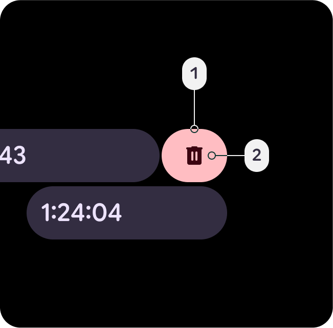 Un rouge sémantique, mais légèrement teinté, qui indique les actions de suppression, de fermeture ou d'annulation, comme le balayage pour afficher. Ajoutée en tant qu'alternative de conteneur légèrement moins alarmante et urgente que la couleur d'erreur atténuée.