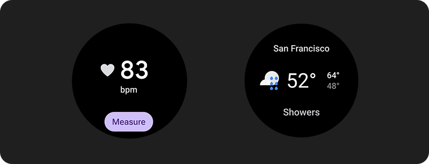 - רלוונטי: המשתמשים לוקחים את מכשירי Wear OS שלהם לכל מקום. כדאי לחשוב איך התוכן בכרטיס רלוונטי למצב ולהקשר הנוכחיים של המשתמש.
