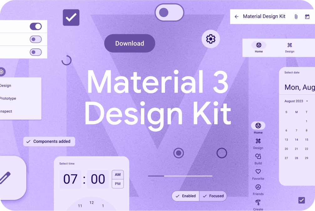 採用 Material Design 樣式,包括尺寸、縮放、大型目標尺寸、顏色和字體排版。