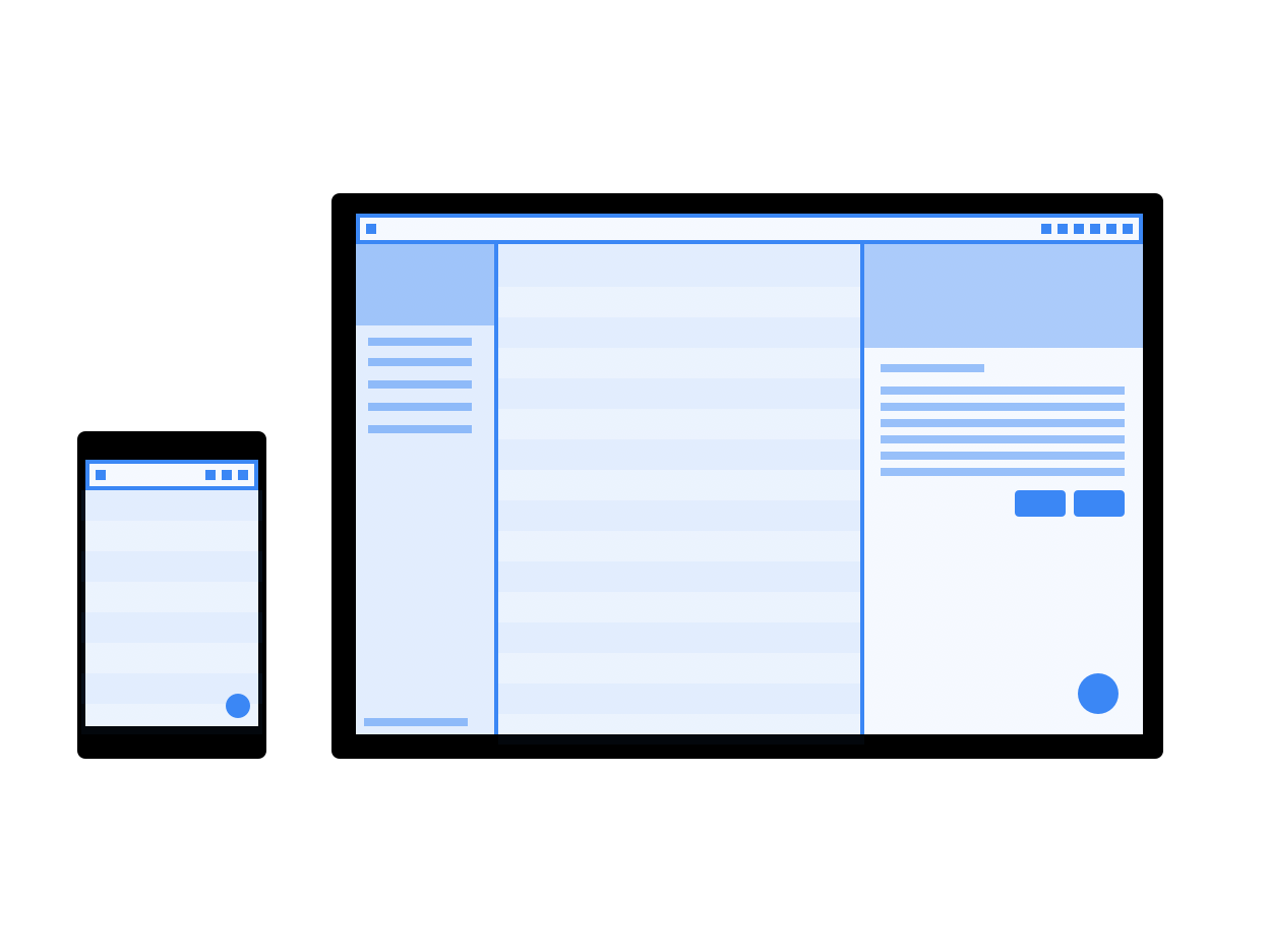 চিত্র ৮। ফোন এবং ডেস্কটপ আকারের স্ক্রিনে একটি প্রতিক্রিয়াশীল লেআউটের নকল।