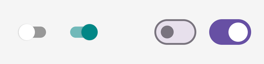 يختلف زر التبديل في M3 عن M2. في كلّ من M2 وM3، يُطلق على عنصر Switch القابل للإنشاء اسم Switch، ولكن تختلف حِزم الاستيراد: