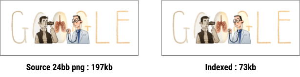 Merepresentasikan gambar sebagai gambar palet akan sangat membantu mengurangi ukuran file secara signifikan. Oleh karena itu, sebaiknya selidiki apakah sebagian besar gambar Anda dapat dikonversi.