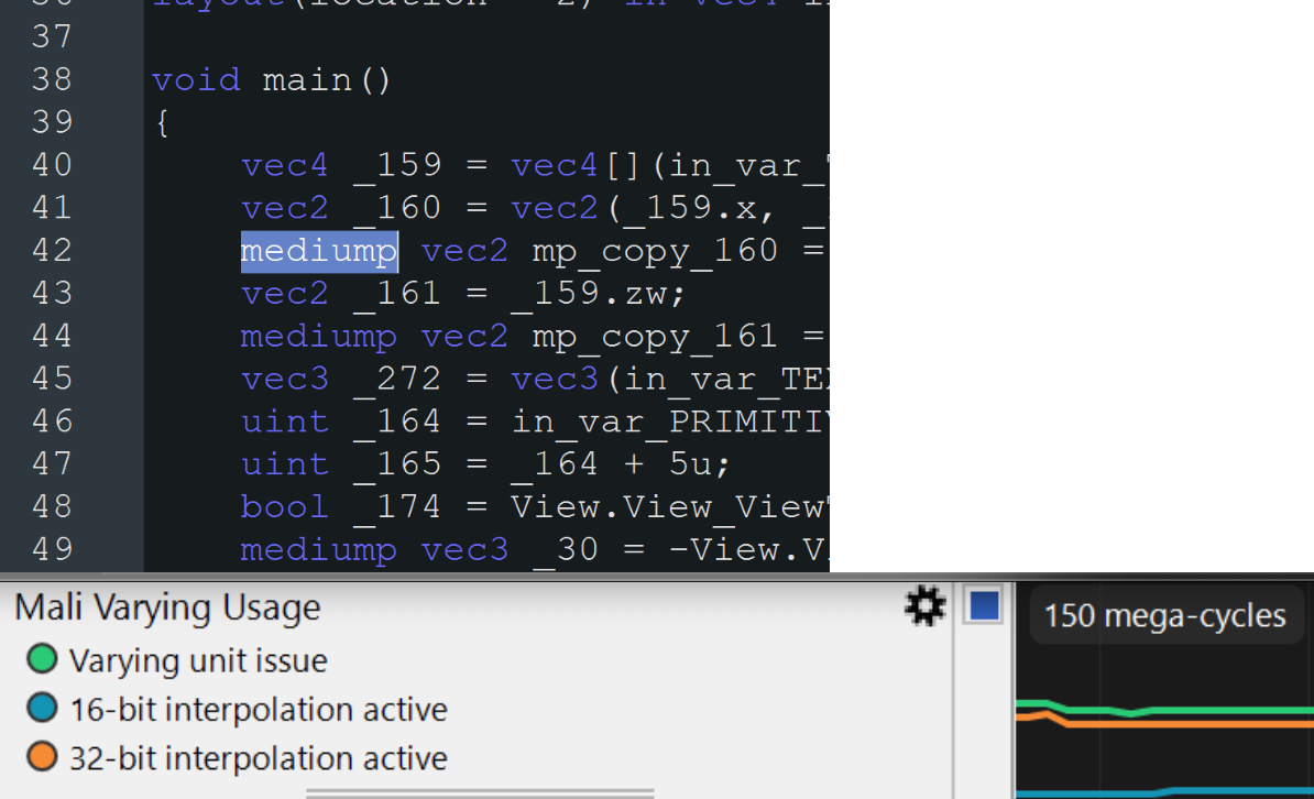 Use GPU debuggers: Diagnostic utilities, such as RenderDoc or mobile GPU profilers (for example, AGI, Mali/GPU Inspector), identify elevated register use or shader stalls associated with precision issues.