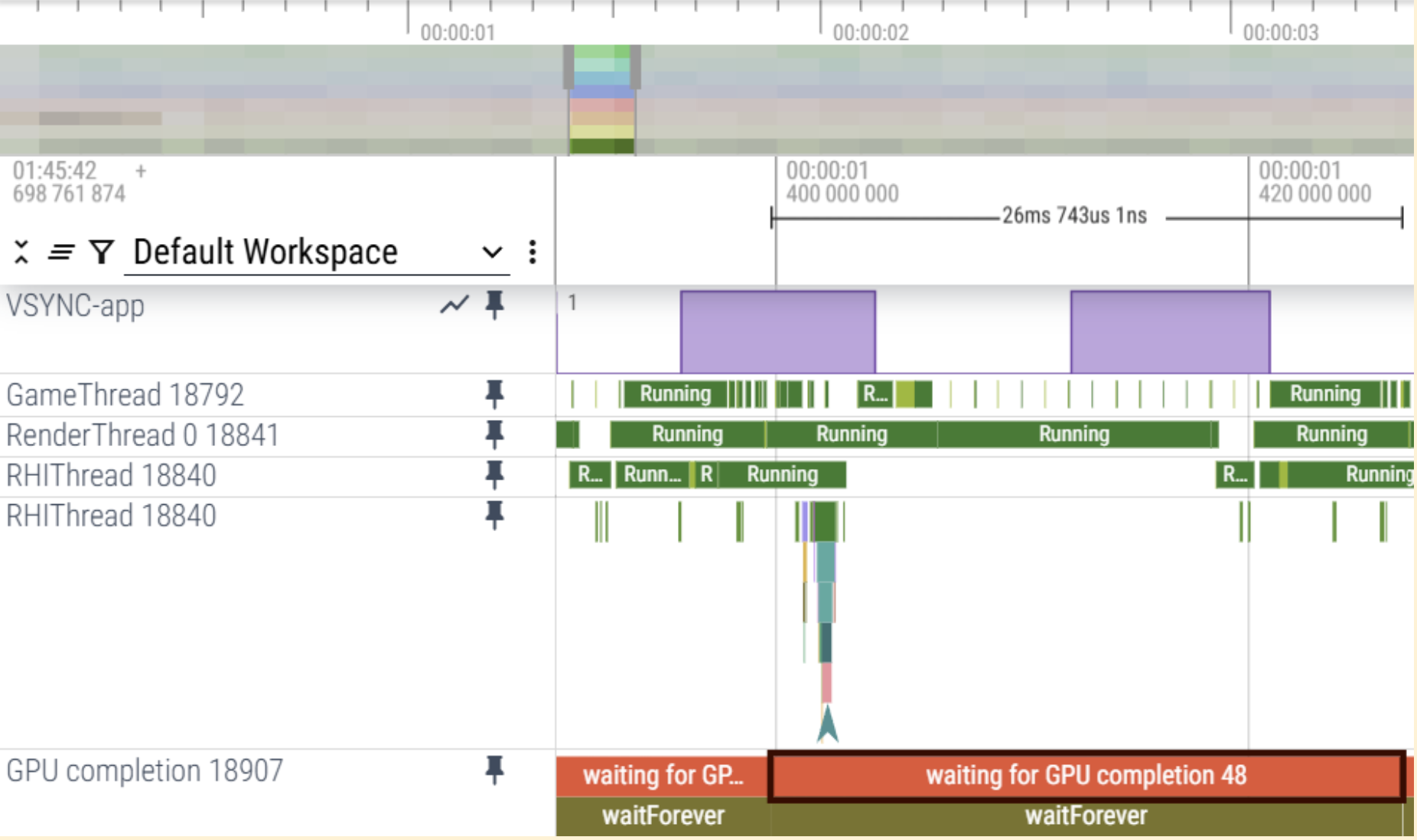 The trace indicates that the GPU completion itself exceeds 25ms, which signifies a GPU-bound scenario.
