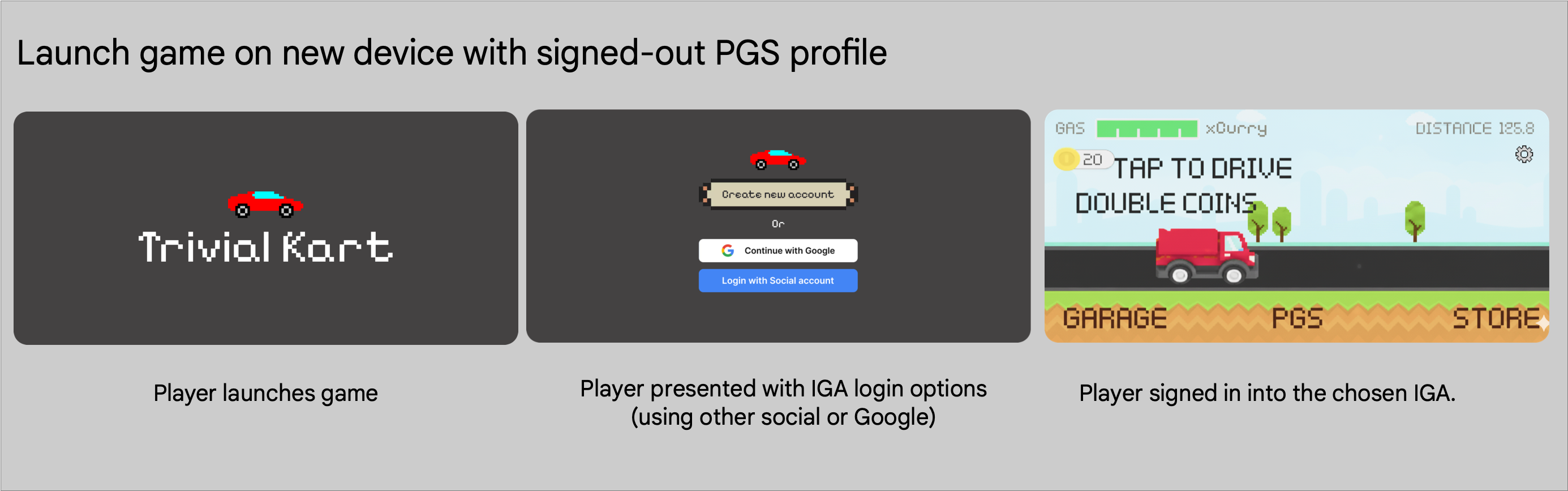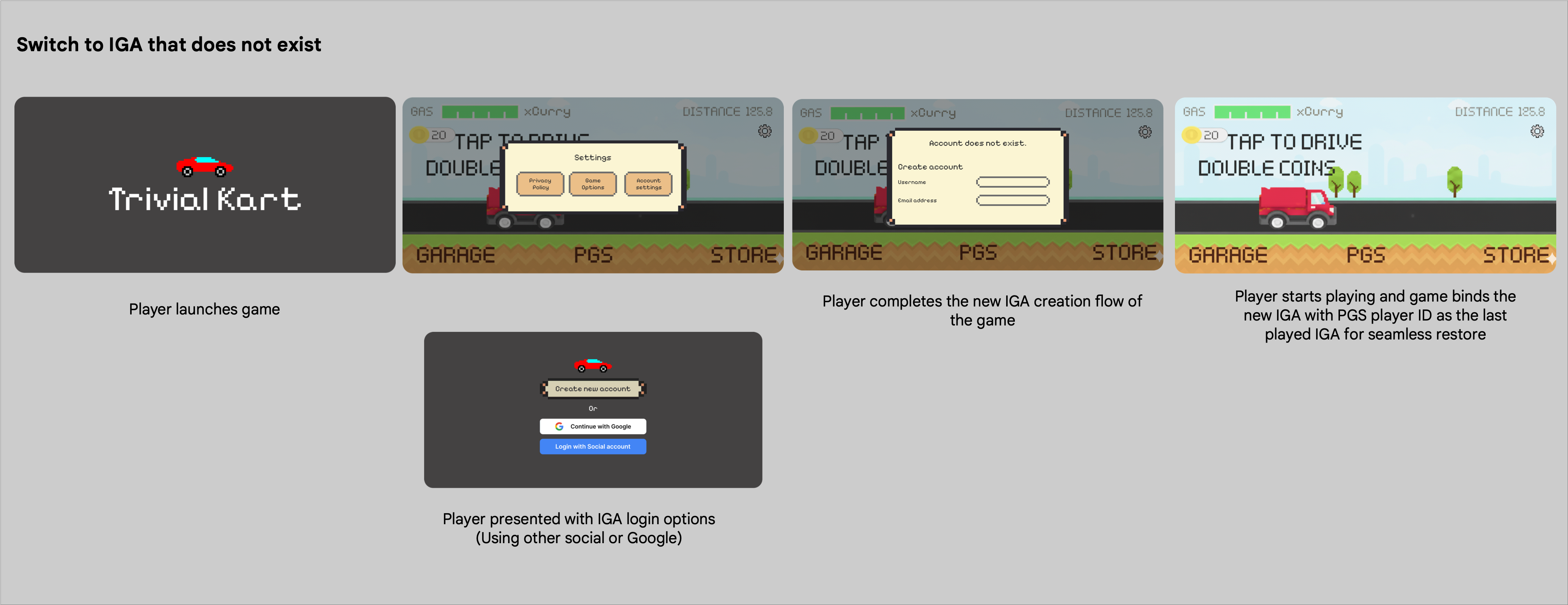2. 当玩家使用其他 IGA 登录时,游戏会将此新账号绑定到当前的 PGS 玩家 ID,作为最后玩过的 IGA,以便无缝恢复。