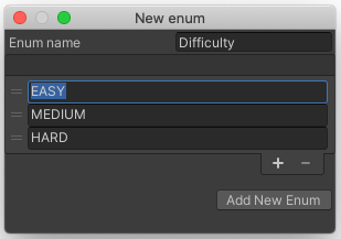 在新資料列中,點選「Type」欄,然後選取「Add or update enum」。舉例來說,您可以為遊戲難度進行列舉。