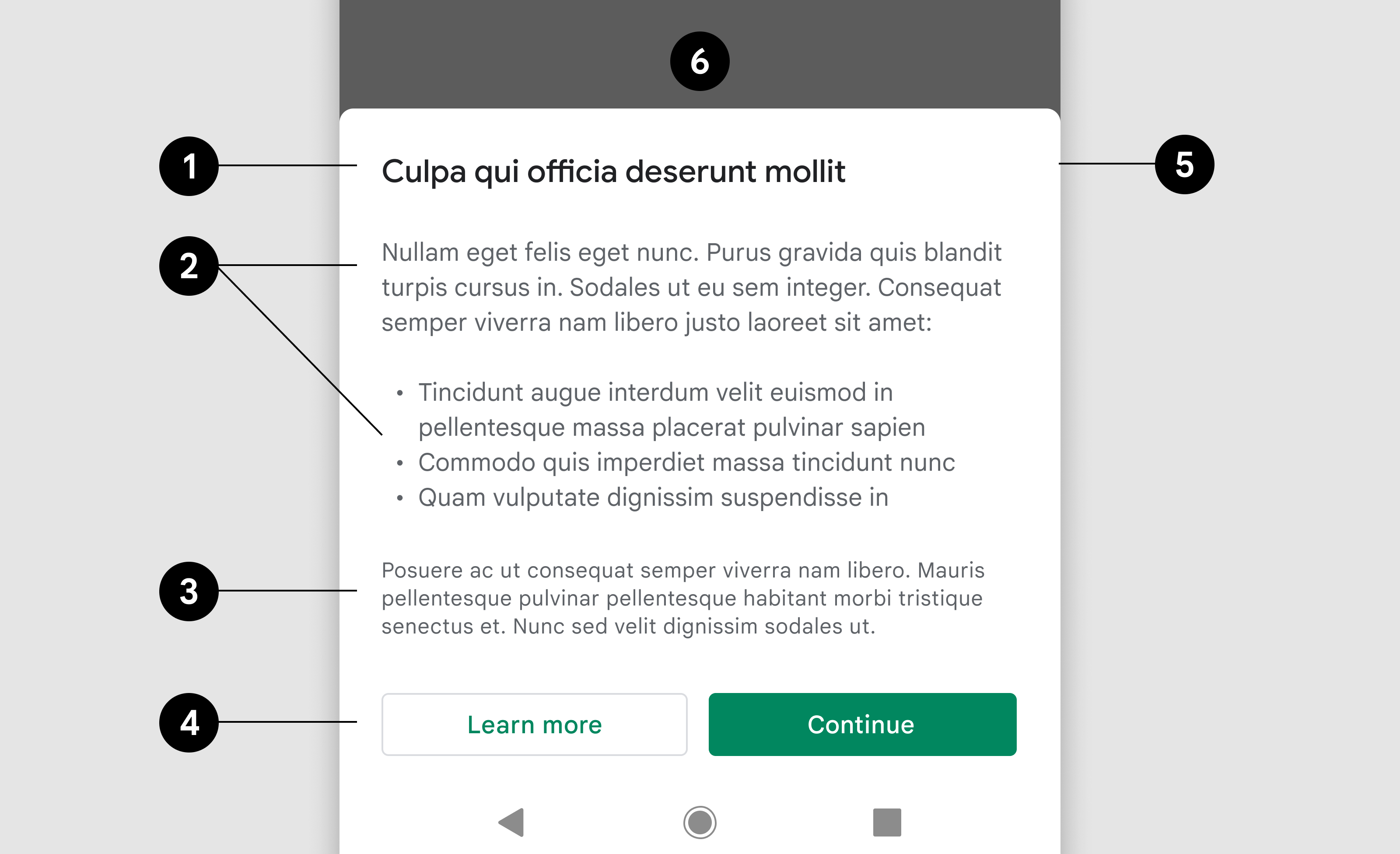 Consulta Google Material Design para obtener más información sobre el diseño y la implementación de las hojas inferiores modales.