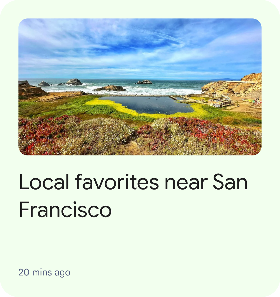 ArticleEntity : ArticleEntity যেটি বিষয়বস্তুর জন্য একটি পাঠ্য-ভিত্তিক সুপারিশ উপস্থাপন করে যা একাধিক বিষয়বস্তুর সাথে প্রাসঙ্গিক। ArticleEntity আইটেম ডেভেলপারদের GenericFeaturedEntity-এর তুলনায় ব্যবহারকারীদের কাছে তথ্য তুলে ধরার জন্য আরও মেটাডেটা সহ বিভিন্ন ধরনের টেক্সট এবং ইমেজ কন্টেন্ট প্রদান করতে দেয়। যেমন: মার্কেটিং কন্টেন্ট, নিউজ স্নিপেট