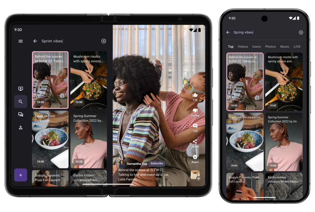 tablet, dan membuat tata letak mode di atas meja pada perangkat foldable untuk panggilan video handsfree.
