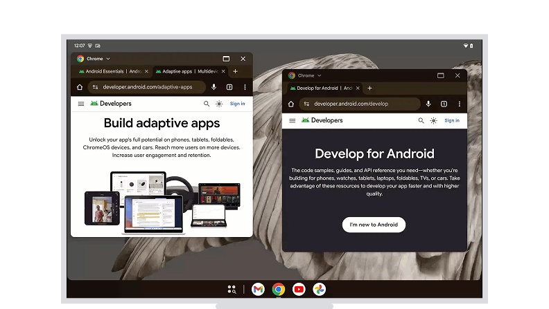 Execute vários apps ao mesmo tempo em janelas redimensionáveis para uma experiência versátil, semelhante a um computador.