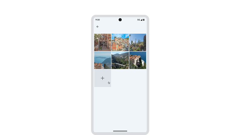 Integre o seletor de fotos à hierarquia de visualização do app e ative os recursos de pesquisa do provedor de mídia em nuvem diretamente no seletor de fotos do Android.