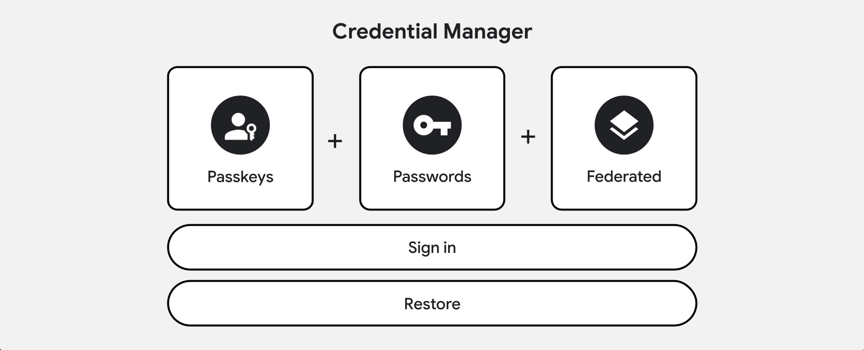 Recuperar contas de apps do usuário ao configurar um novo dispositivo usando o recurso "Restaurar credenciais" do Gerenciador de credenciais.