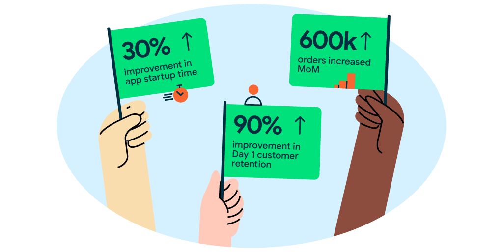 Według wskaźnika uruchomienia „na zimno” w Firebase Performance średni wzrost wyniósł 25%, a w przypadku urządzeń z niższej i średniej półki czas uruchamiania aplikacji „na zimno” skrócił się nawet o 30%.