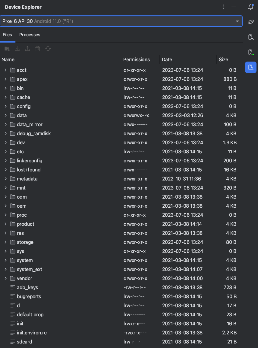 Device Explorer memungkinkan Anda untuk melihat, menyalin, dan menghapus file di perangkat Android. Hal ini berguna saat memeriksa file yang dibuat oleh aplikasi Anda atau jika Anda ingin mentransfer file ke dan dari perangkat.