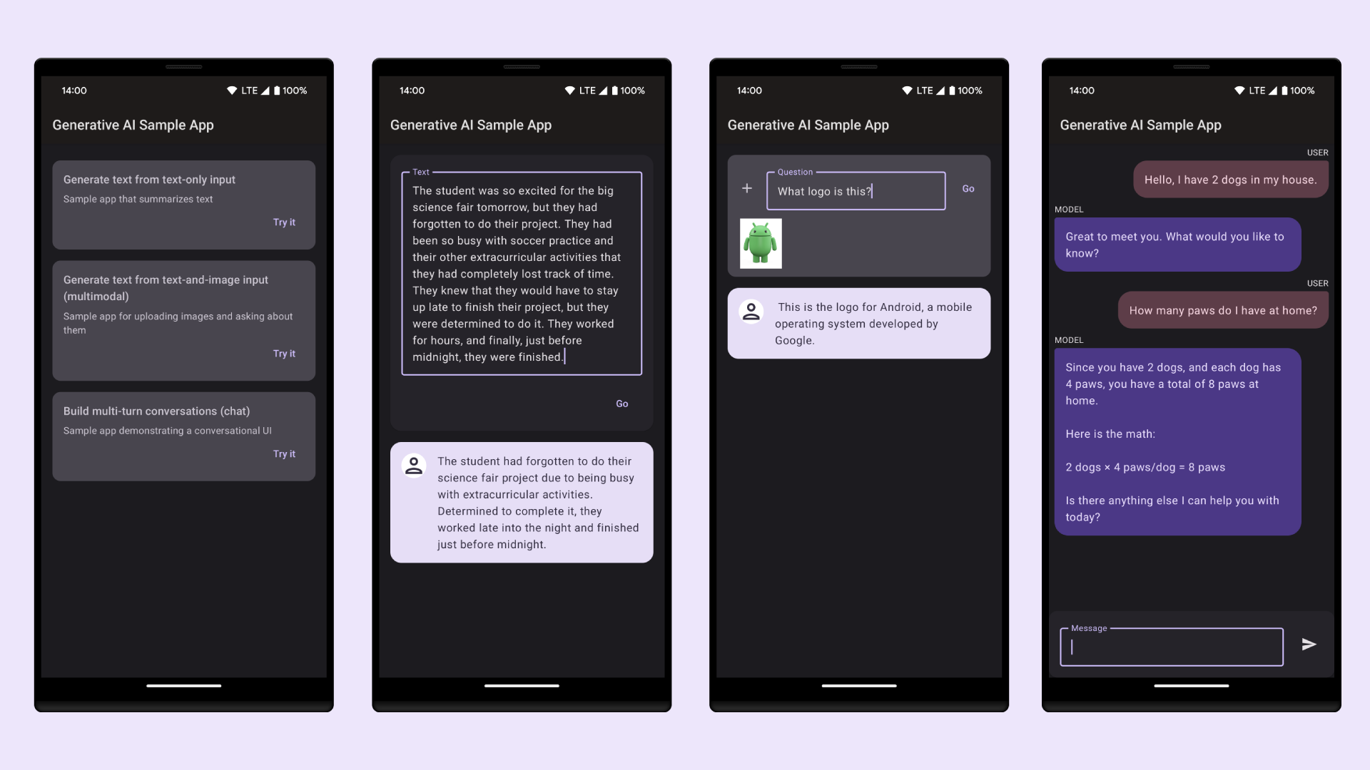 Coba kemampuan chat, teks, dan multi-modal Gemini di aplikasi contoh.