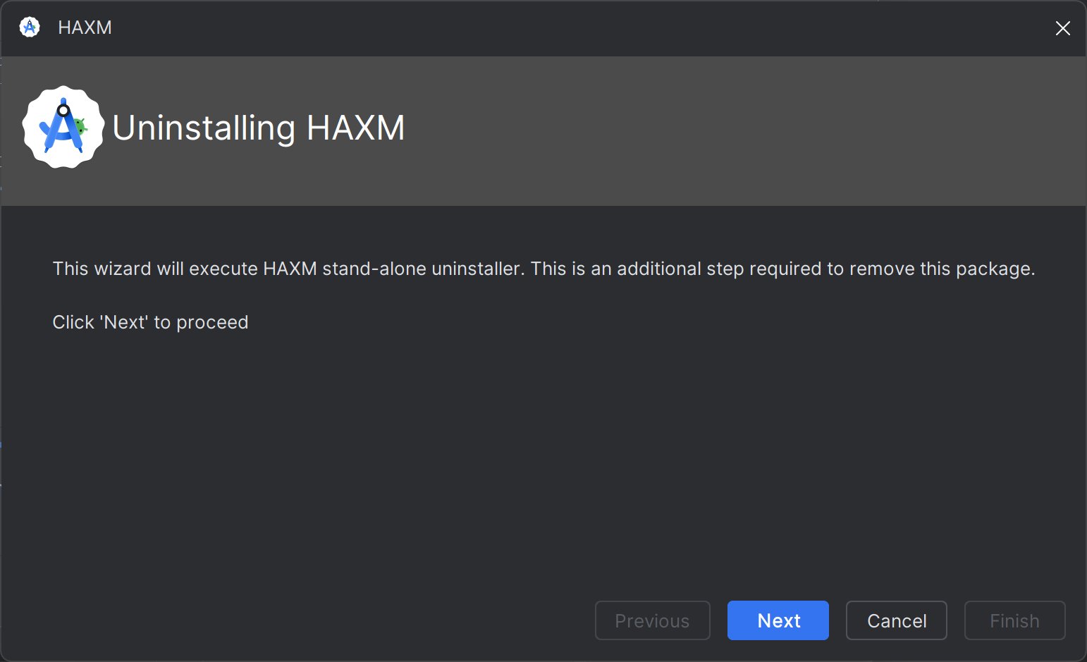 เมื่อถอนการติดตั้ง Intel HAXM เรียบร้อยแล้ว คุณควรเห็นข้อความต่อไปนี้