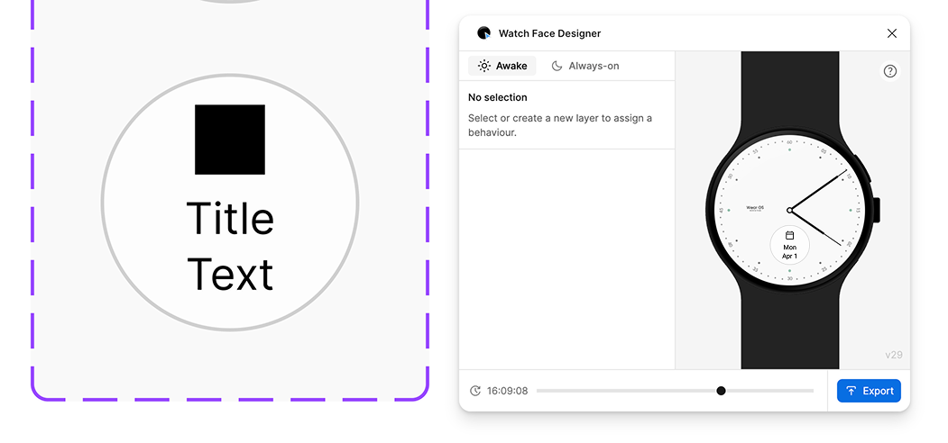 يتوافق تطبيق Watch Face Designer مع مظاهر الألوان باستخدام أنماط Figma.