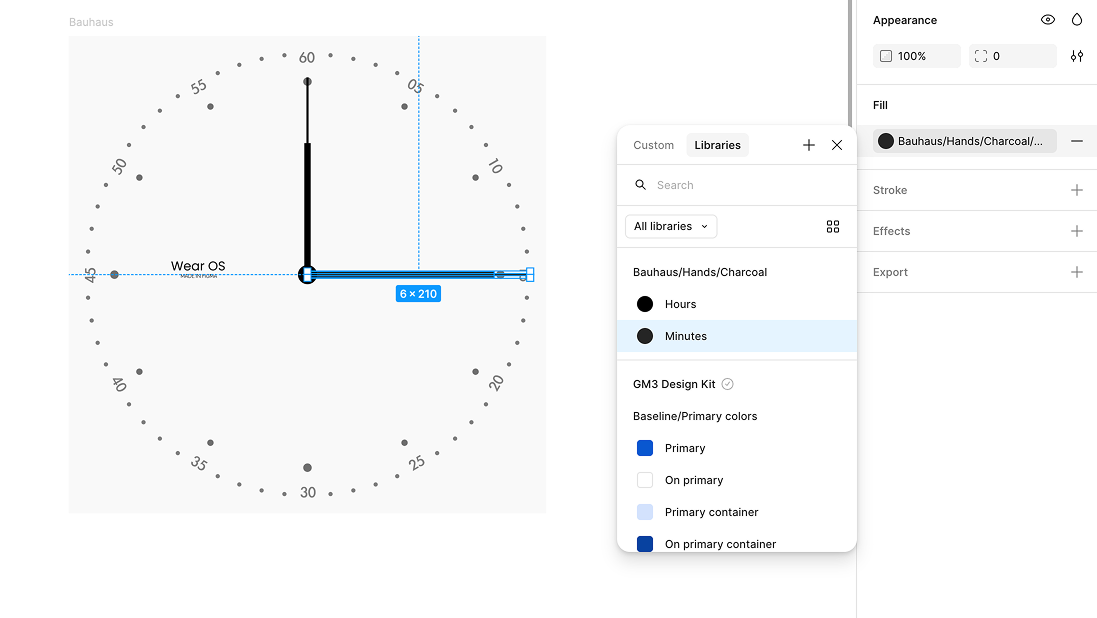 Watch Face Designer incluye compatibilidad con temas de color a través de estilos de Figma.