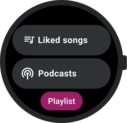 Da die meisten Nutzer mehr als eine Medien-App haben, bietet Wear OS ein anpassbares Layout für die Mediensteuerung, damit Sie die Mediensteuerung von App zu App einheitlich gestalten können.