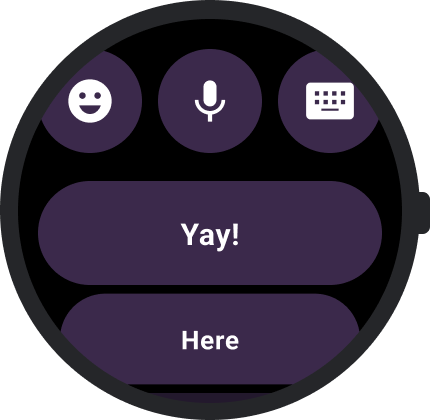 Orang senang berkomunikasi dalam berbagai format, oleh karena itu Wear OS menawarkan mekanisme input yang berbeda kepada Anda, seperti emoji, suara, dan teks.