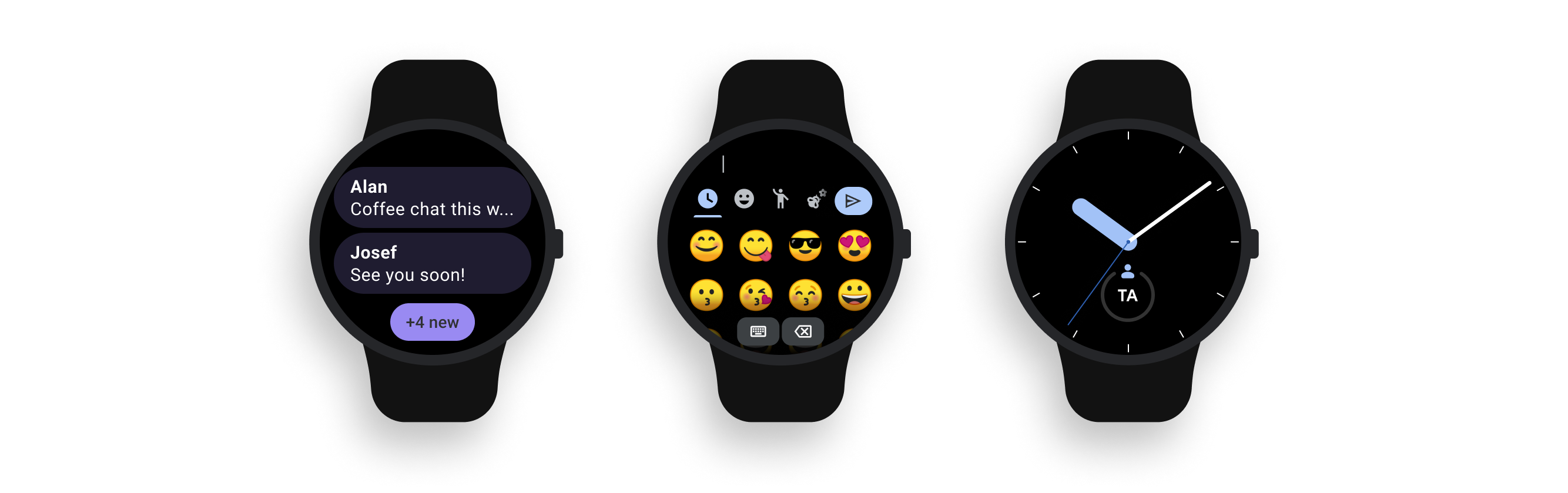 Le persone amano comunicare in diversi formati, quindi Wear OS ti consente di offrire diversi meccanismi di input, come emoji, voce e testo.
